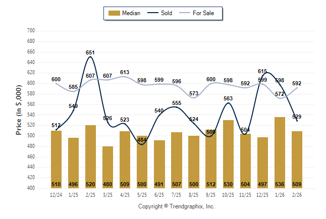 February 2026 Median Price was Neutral, Avg. For Sale Price was Neutral, and Avg. Sold Price was Neutral**