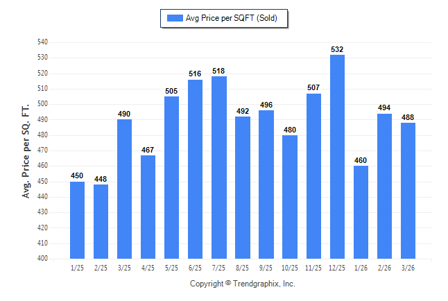 March 2026 Average Sold Price per Square Footage was Neutral**