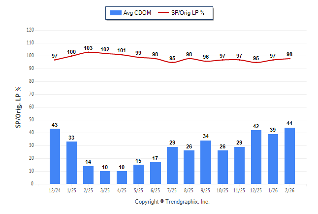 February 2026 Average Continuous Days on Market trend was Rising and Sold/Original List Price Ratio Remains Steady**