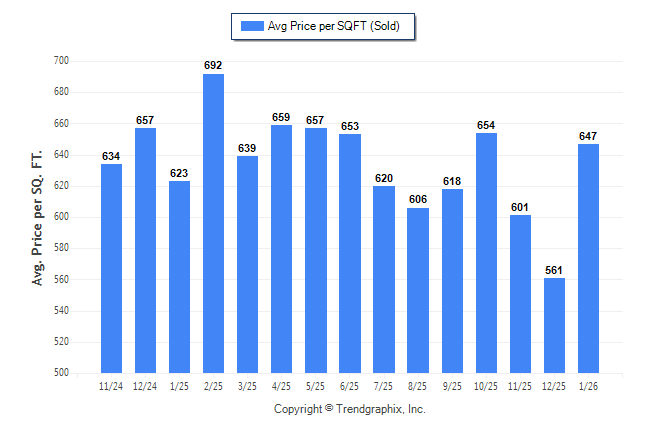 January 2026 Average Sold Price per Square Footage was Neutral**