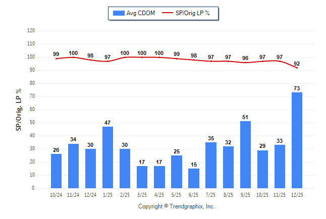 December 2025 Average Continuous Days on Market trend was Rising and Sold/Original List Price Ratio was Falling**