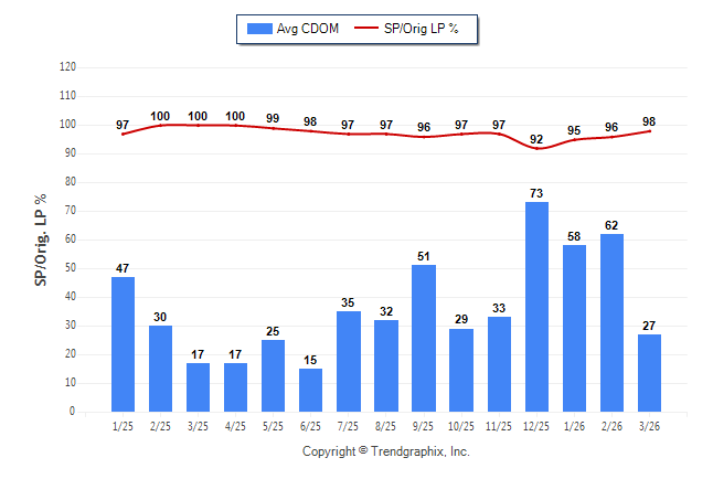 March 2026 Average Continuous Days on Market trend Remains Steady and Sold/Original List Price Ratio was Rising**