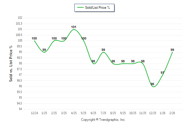 February 2026 Sold/List Price Ratio Remains Steady**