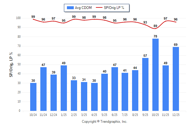 December 2025 Average Continuous Days on Market trend Remains Steady and Sold/Original List Price Ratio Remains Steady**