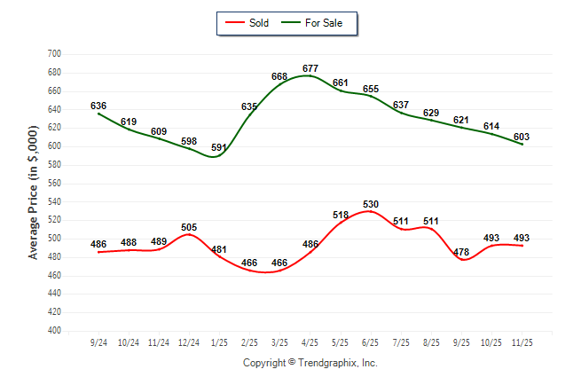 November 2025 Average For Sale Price was Depreciating and Average Sold Price was Neutral**