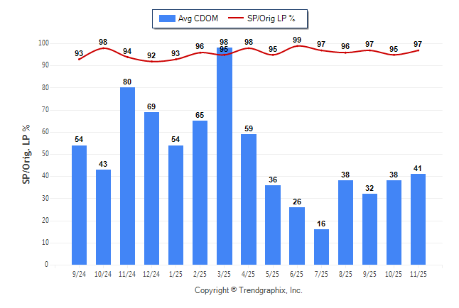 November 2025 Average Continuous Days on Market trend was Rising and Sold/Original List Price Ratio Remains Steady**