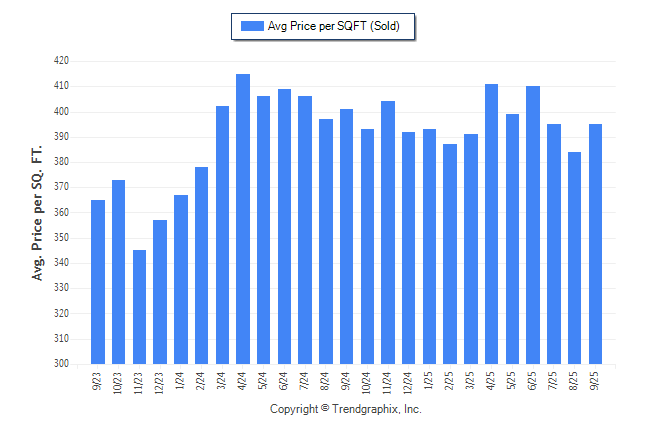 September 2025 Average Sold Price per Square Footage was Neutral**