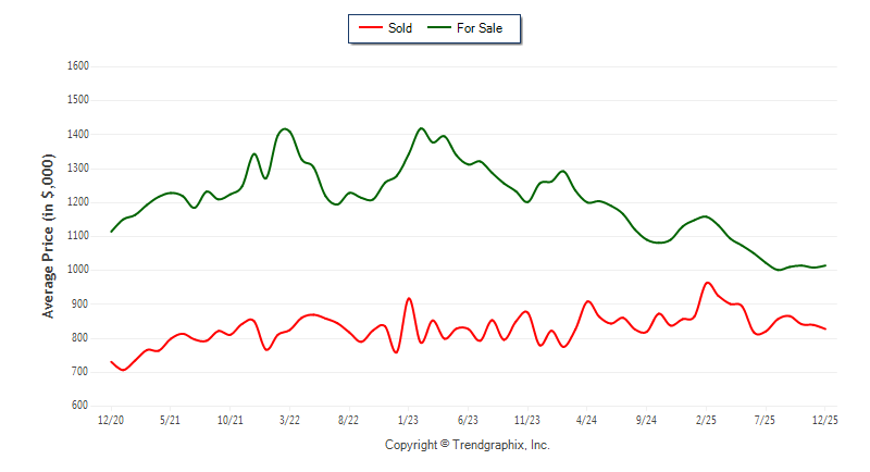 December 2025 Average For Sale Price was Appreciating and Average Sold Price was Depreciating**