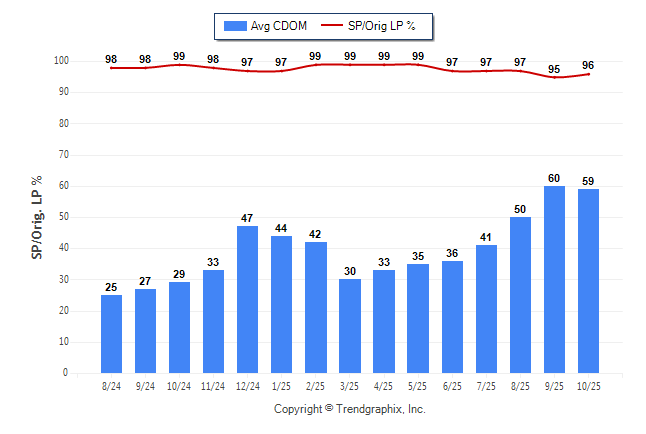 October 2025 Average Continuous Days on Market trend Remains Steady and Sold/Original List Price Ratio Remains Steady**