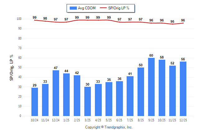 December 2025 Average Continuous Days on Market trend Remains Steady and Sold/Original List Price Ratio Remains Steady**