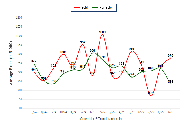 September 2025 Average For Sale Price was Depreciating and Average Sold Price was Neutral**