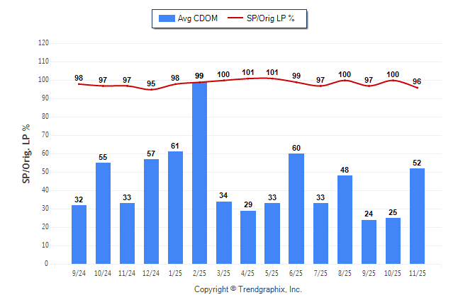 November 2025 Average Continuous Days on Market trend Remains Steady and Sold/Original List Price Ratio was Falling**