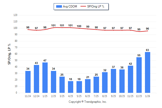 January 2026 Average Continuous Days on Market trend was Rising and Sold/Original List Price Ratio Remains Steady**