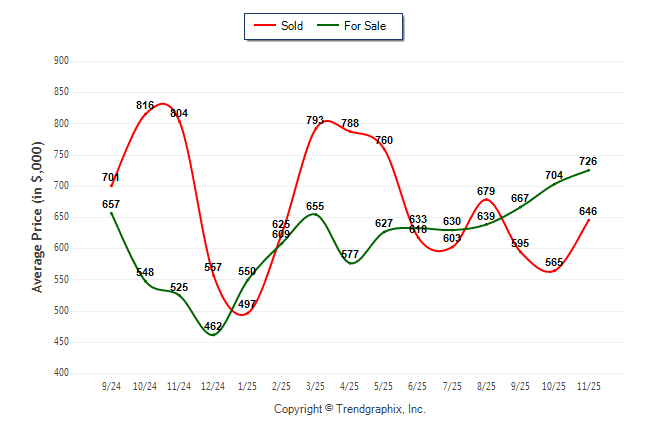 November 2025 Average For Sale Price was Appreciating and Average Sold Price was Neutral**