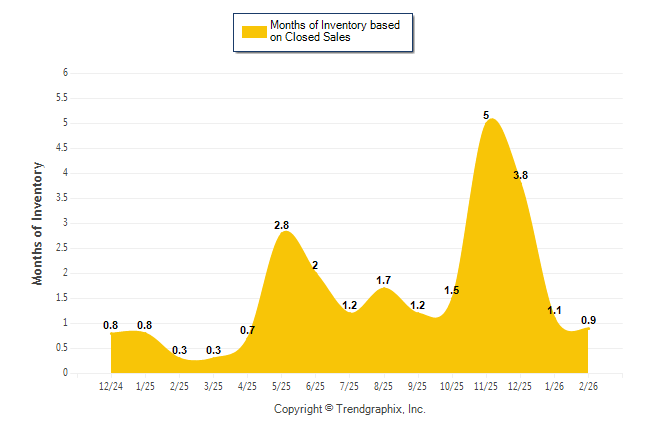 Curnt vs. Same Month 1 Yr Ago: Months of Inventory (Closed Sales)