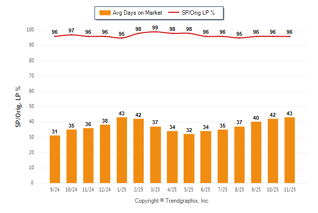 November 2025 Average Days on Market trend was Rising and Sold/Original List Price Ratio Remains Steady**