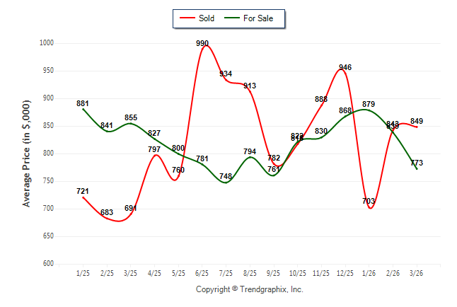 March 2026 Average For Sale Price was Depreciating and Average Sold Price was Neutral**