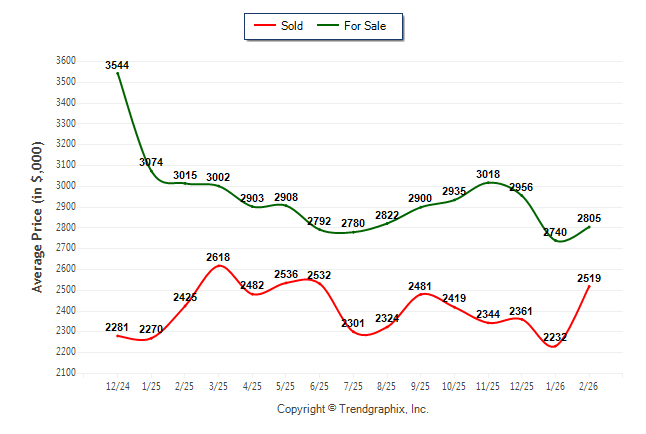 February 2026 Average For Sale Price was Neutral and Average Sold Price was Neutral**
