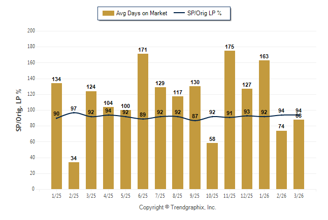 March 2026 Average Days on Market trend Remains Steady and Sold/Original List Price Ratio was Rising**
