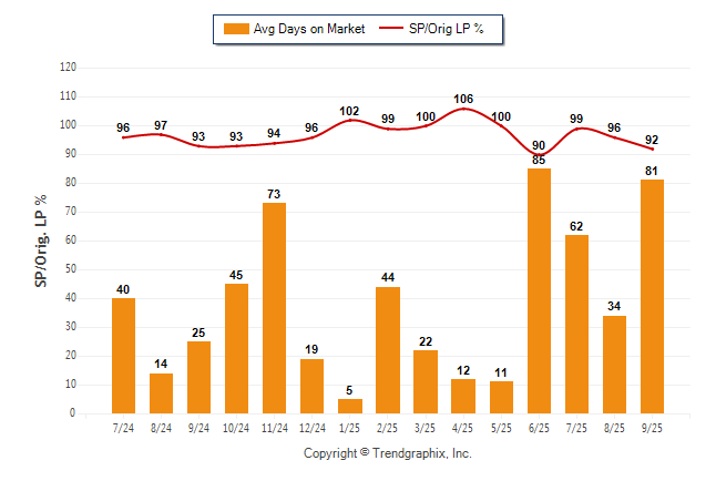 September 2025 Average Days on Market trend was Rising and Sold/Original List Price Ratio was Falling**