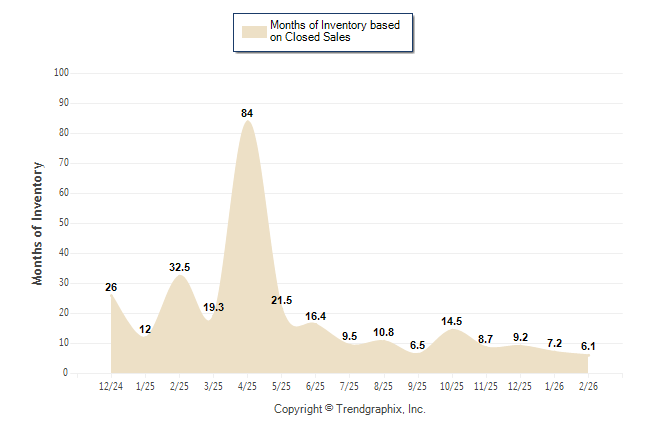 Curnt vs. Same Month 1 Yr Ago: Months of Inventory (Closed Sales)