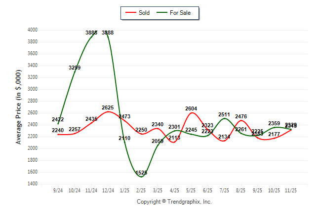 November 2025 Average For Sale Price was Neutral and Average Sold Price was Neutral**