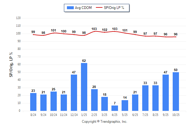 October 2025 Average Continuous Days on Market trend was Rising and Sold/Original List Price Ratio was Falling**