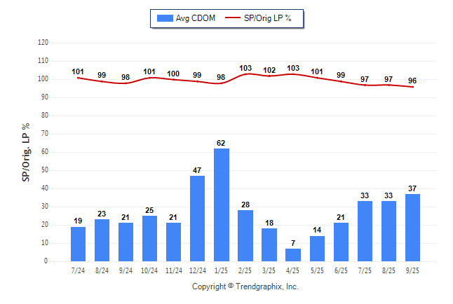 September 2025 Average Continuous Days on Market trend was Rising and Sold/Original List Price Ratio was Falling**
