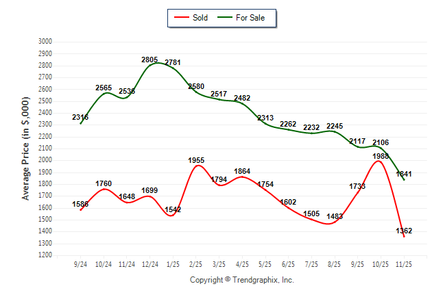 November 2025 Average For Sale Price was Depreciating and Average Sold Price was Neutral**