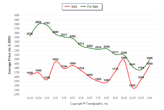 January 2026 Average For Sale Price was Neutral and Average Sold Price was Neutral**