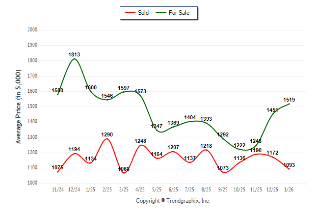 January 2026 Average For Sale Price was Appreciating and Average Sold Price was Neutral**