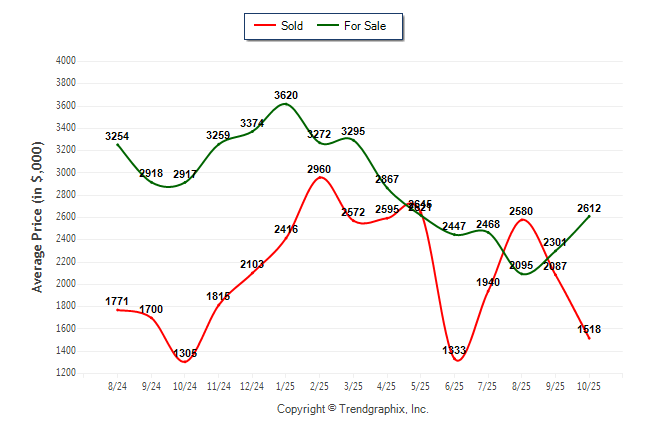 October 2025 Average For Sale Price was Neutral and Average Sold Price was Neutral**