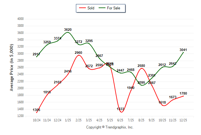 December 2025 Average For Sale Price was Appreciating and Average Sold Price was Neutral**