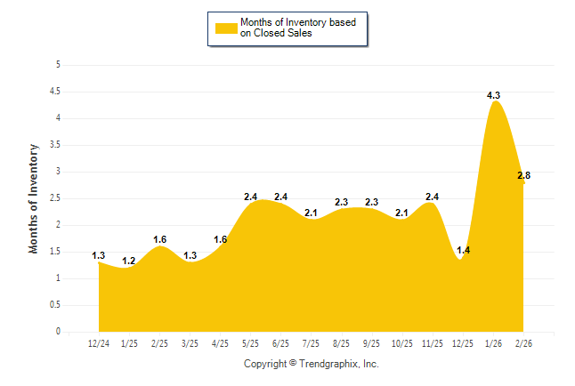 Curnt vs. Same Month 1 Yr Ago: Months of Inventory (Closed Sales)