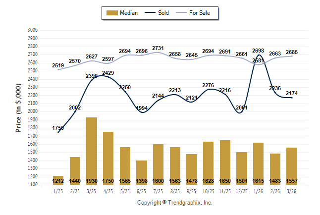 March 2026 Median Price was Neutral, Avg. For Sale Price was Neutral, and Avg. Sold Price was Neutral**