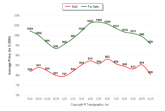 November 2025 Average For Sale Price was Depreciating and Average Sold Price was Depreciating**
