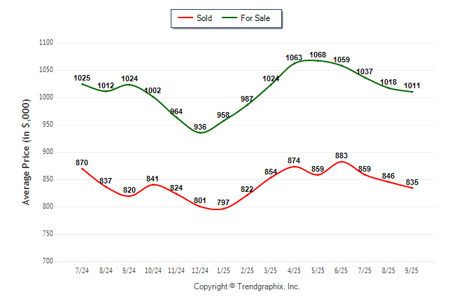 September 2025 Average For Sale Price was Depreciating and Average Sold Price was Depreciating**
