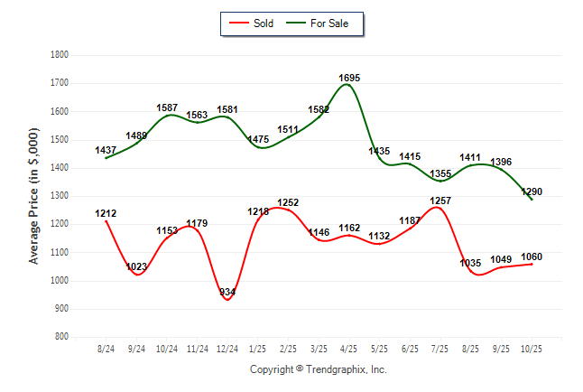 October 2025 Average For Sale Price was Depreciating and Average Sold Price was Neutral**