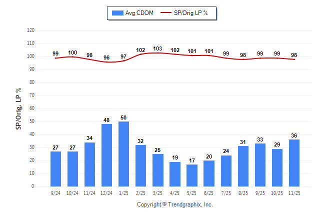 November 2025 Average Continuous Days on Market trend was Rising and Sold/Original List Price Ratio Remains Steady**