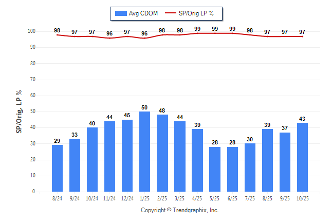 October 2025 Average Continuous Days on Market trend was Rising and Sold/Original List Price Ratio was Falling**