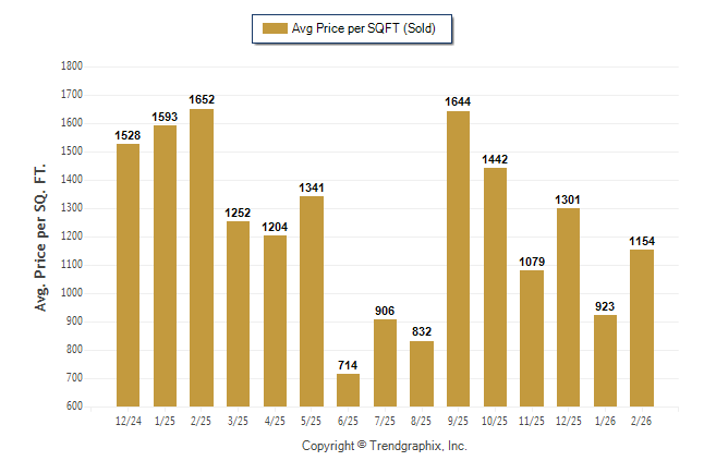 February 2026 Average Sold Price per Square Footage was Neutral**