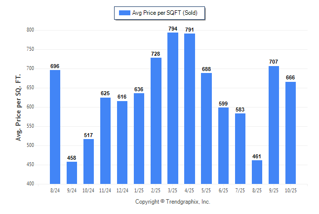October 2025 Average Sold Price per Square Footage was Neutral**