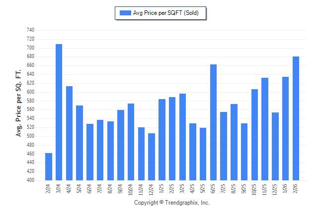 February 2026 Average Sold Price per Square Footage was Appreciating**