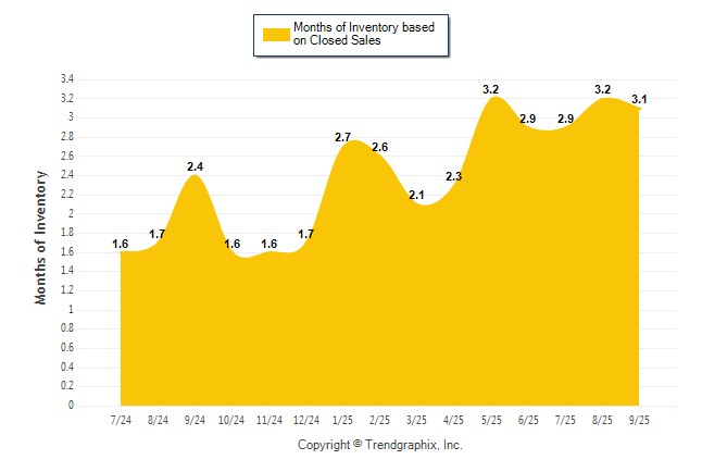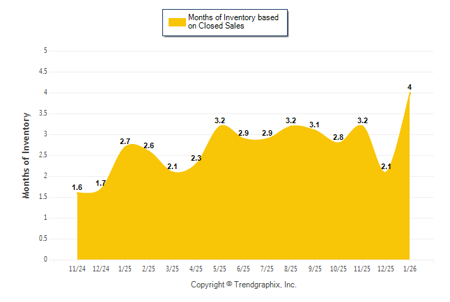 Curnt vs. Same Month 1 Yr Ago: Months of Inventory (Closed Sales)