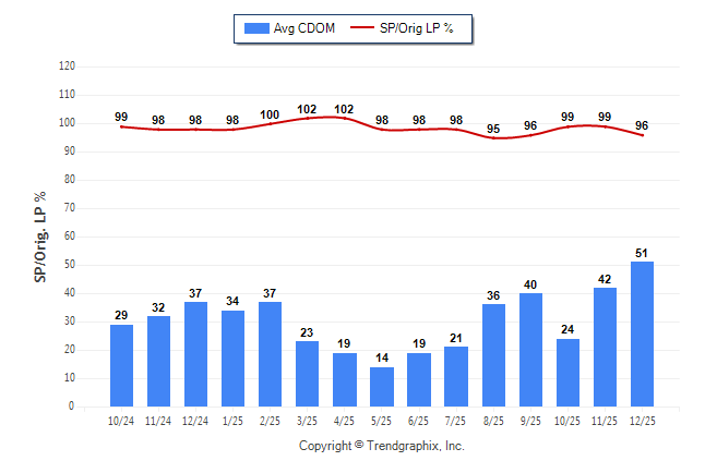 December 2025 Average Continuous Days on Market trend was Rising and Sold/Original List Price Ratio Remains Steady**