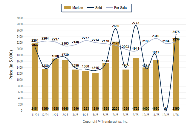 January 2026 Median Price was Appreciating, Avg. For Sale Price was Neutral, and Avg. Sold Price was Appreciating**