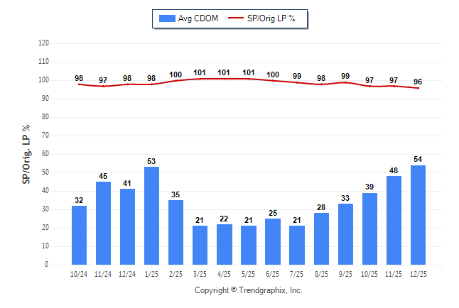 December 2025 Average Continuous Days on Market trend was Rising and Sold/Original List Price Ratio was Falling**