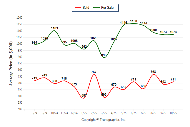 October 2025 Average For Sale Price was Neutral and Average Sold Price was Neutral**