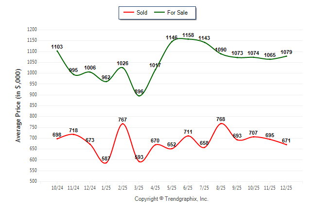 December 2025 Average For Sale Price was Neutral and Average Sold Price was Depreciating**