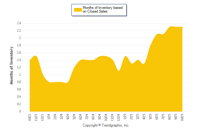 Curnt vs. Same 12 Months 1 Yr Ago: Months of Inventory (Closed Sales)